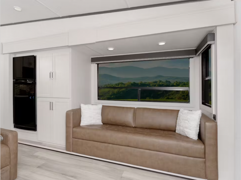 The Road Defense™ Powder Coated Chassis offers superior protection against corrosion and the HyperDeck flooring is stronger, lighter and more resilient than laminate floors. You will feel right at home with residential features such as, designer vinyl flooring throughout, a farmhouse style sink, an upgraded memory foam mattress, and much more!