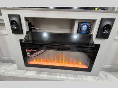Include all of your favorite people on your next adventure in this Montana High Country fifth wheel! Not only is there a rear private bedroom with a king-size bed for you, but there is also a loft above with stairs that take you to the bunk mats. Now your kids will have their own space too. You can even host a few other travelers up front in the separate living room on the two hide-a-bed sofas. This area will be perfect for cozy sleeping because of the fireplace, and you can even watch a movie as you drift off to sleep because of the 50" LED TV too. The full bathroom has a 48" x 30" shower with seat, and the kitchen has a breakfast bar that you can sit at to eat your cereal each morning