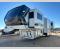 Life will be easier at the campground in this fifth wheel with a bath and a half! The full rear bathroom has a 48" x 30" fiberglass shower with a seat and skylight above, a linen closet to keep your towels close, a dual sink vanity for two to get ready at once, and a barn door to close off the master suite. The bedroom also has a king bed slide with storage underneath across from a dresser with a 32" Smart TV and wardrobe, as well as a large closet with stackable washer and dryer prep. The chef can prepare their best meals with the kitchen island, convection microwave and 24" range, plus there is a pantry/buffet and a pivot dinette to enjoy your meals at. The front living area will have you feeling right at home with the front entertainment center that has a telescoping 50" Smart TV, a 5,000 BTU decorative fireplace heater, and storage on either side. There is also opposing hide-a-bed sofa slides for extra sleeping spaces and power theater seating for even more comfort!